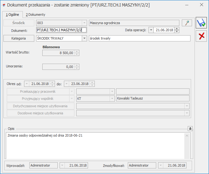 - automatyczne naliczanie amortyzacji