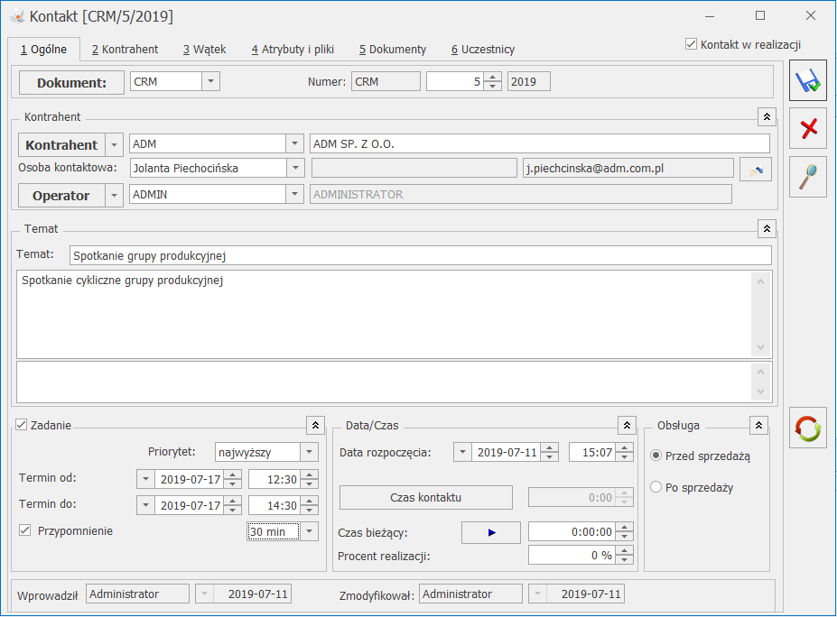 Szczegółowe informacje dostępne są w dokumentacji modułu CRM.